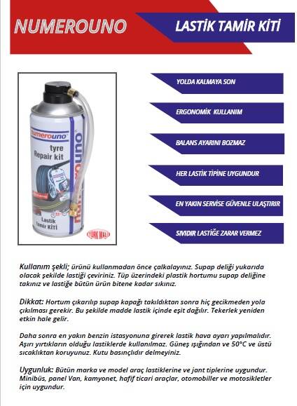 Dikkat: Hortum çıkarılıp supap kapağı takıldıktan sonra hiç gecikmeden yola çıkılması gerekir. Bu şekilde madde lastik içinde eşit dağılır. Tekerlek yeniden etkin hale gelir. Daha sonra en yakın benzin istasyonuna girerek lastik hava ayarı yapılmalıdır. Aşırı yırtıkların olduğu lastiklerde kullanılmaz. Güneş ışığından ve 50 derece ve üstü sıcaklıktan koruyunuz. Kutu basınçlıdır delmeyiniz.
