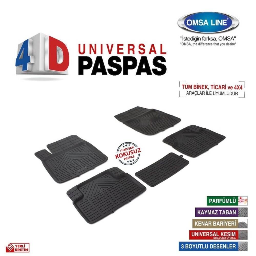 4D havuzlu paspas kauçuk ham madde kullanılarak pres baskı tekniği ile üretilir. Çivili alt ekstra yüzeye sahiptir. Ortalama ürün ağırlığı 6-8 kgdir.